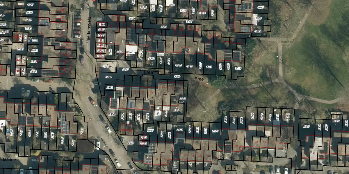 Het perceel waarop Bree 14 staat heeft een oppervlakte van 110 m². Dit is een middelgroot perceel. De perceeloppervlakte wordt geregistreerd door het Kadaster. Gedetailleerde informatie over de maten van dit perceel kunt u vinden in het rapport Kadastrale kaart met maatvoering van Bree 14.