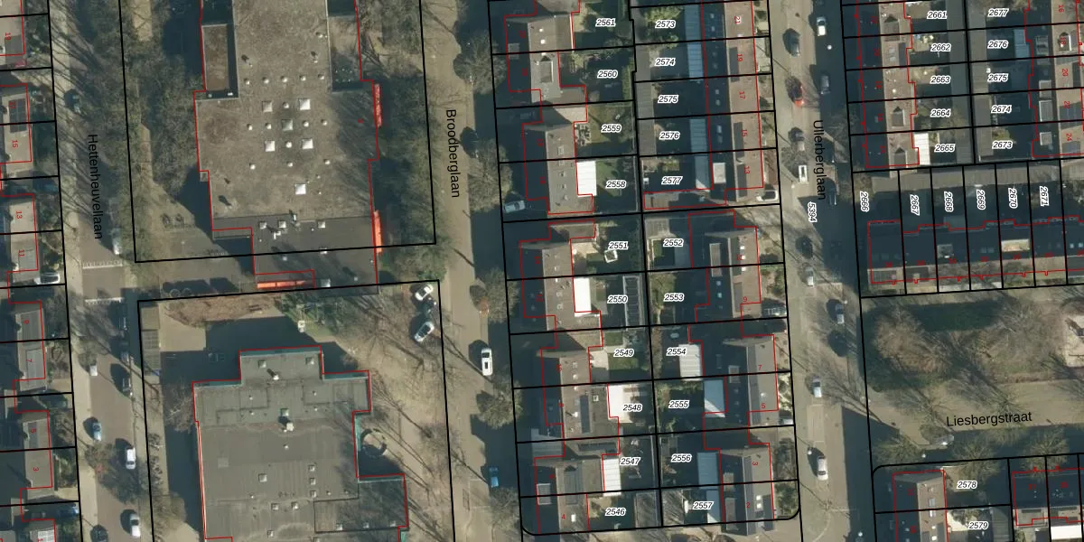 Broodberglaan 14 is gelegen op kadastraal perceel WSL01W2551. Deze kadastrale aanduiding is uniek en wordt gebruikt door het Kadaster om eigendomsrechten en andere zakelijke rechten vast te leggen. Het perceel maakt onderdeel uit van de kadastrale gemeente Woensel.