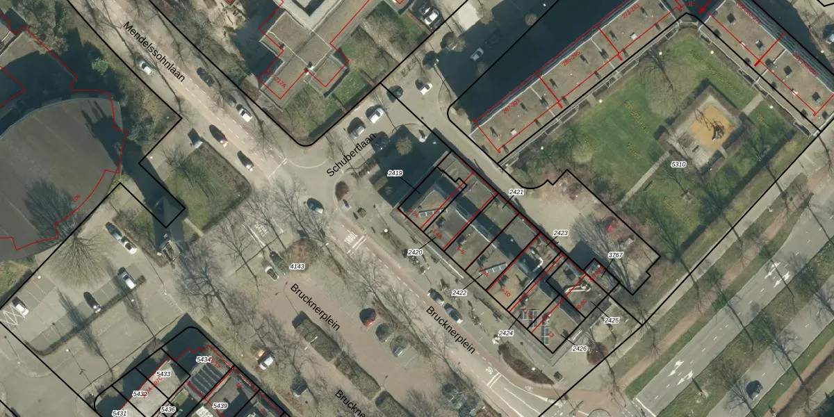 Brucknerplein 1 is gelegen op kadastraal perceel GTL01D2419. Deze kadastrale aanduiding is uniek en wordt gebruikt door het Kadaster om eigendomsrechten en andere zakelijke rechten vast te leggen. Het perceel maakt onderdeel uit van de kadastrale gemeente Gestel.