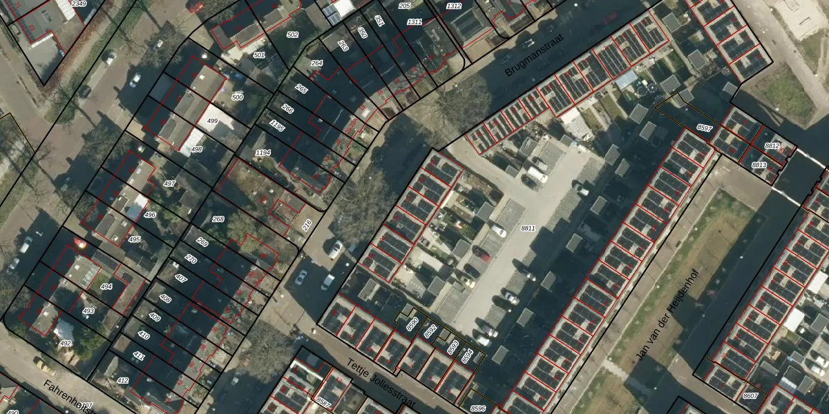 Het perceel waarop Brugmanstraat 27 staat heeft een oppervlakte van 5512 m². Dit is een zeer groot perceel. De perceeloppervlakte wordt geregistreerd door het Kadaster. Gedetailleerde informatie over de maten van dit perceel kunt u vinden in het rapport Kadastrale kaart met maatvoering van Brugmanstraat 27.
