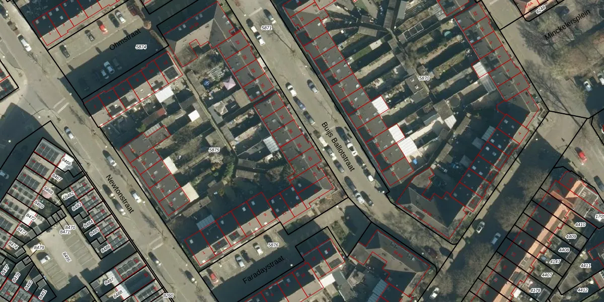 Buijs Ballotstraat 38 is gelegen op kadastraal perceel WSL01G5875. Deze kadastrale aanduiding is uniek en wordt gebruikt door het Kadaster om eigendomsrechten en andere zakelijke rechten vast te leggen. Het perceel maakt onderdeel uit van de kadastrale gemeente Woensel.