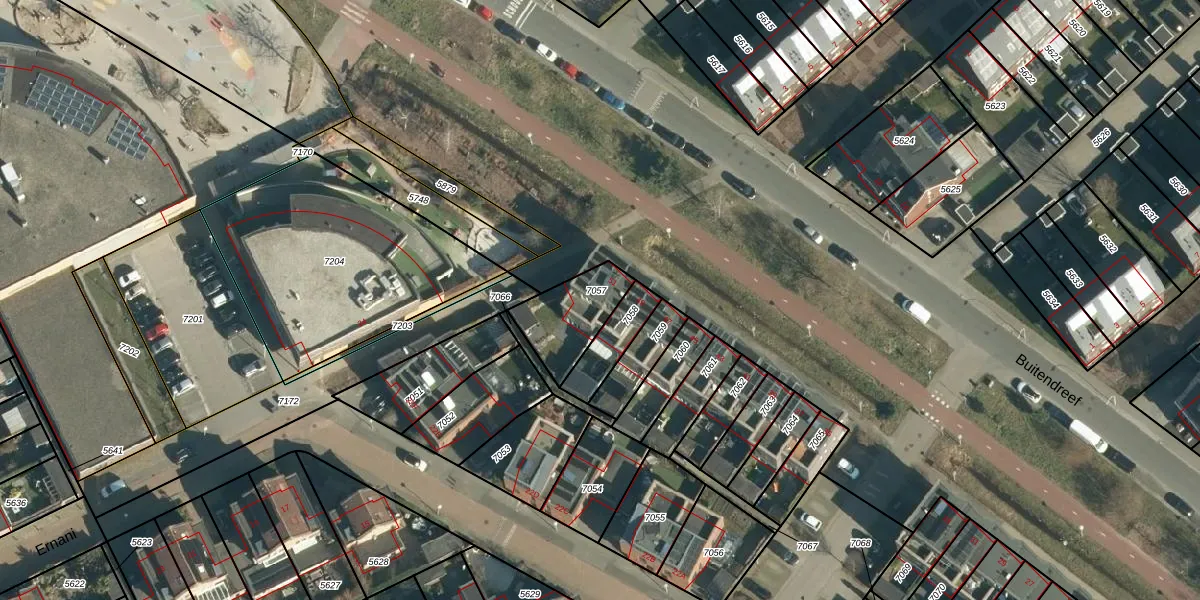 Buitendreef 51 is gelegen op kadastraal perceel WSL01W7057. Deze kadastrale aanduiding is uniek en wordt gebruikt door het Kadaster om eigendomsrechten en andere zakelijke rechten vast te leggen. Het perceel maakt onderdeel uit van de kadastrale gemeente Woensel.