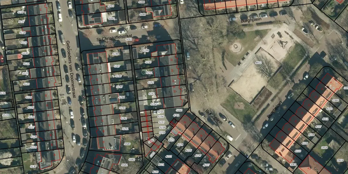Burghplein 22 is gelegen op kadastraal perceel STM00E5153. Deze kadastrale aanduiding is uniek en wordt gebruikt door het Kadaster om eigendomsrechten en andere zakelijke rechten vast te leggen. Het perceel maakt onderdeel uit van de kadastrale gemeente Stratum.