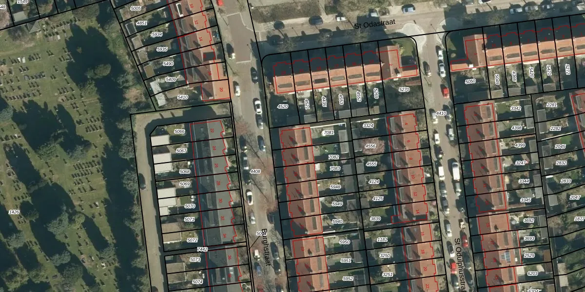 Gebruik de zoekbalk of klik op een perceel voor informatie over de adressen binnen dit perceel.