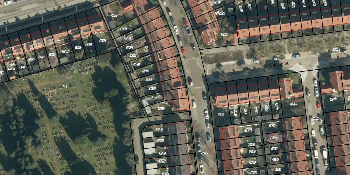 Gebruik de zoekbalk of klik op een perceel voor informatie over de adressen binnen dit perceel.