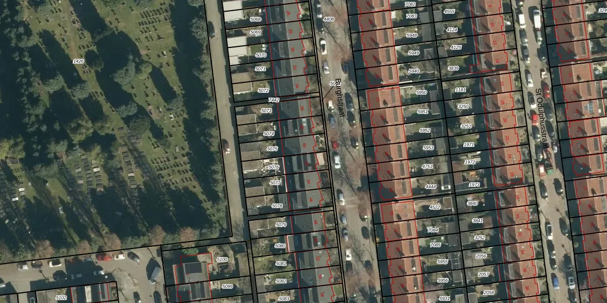 Burghstraat 40 is gelegen op kadastraal perceel STM00E5075. Deze kadastrale aanduiding is uniek en wordt gebruikt door het Kadaster om eigendomsrechten en andere zakelijke rechten vast te leggen. Het perceel maakt onderdeel uit van de kadastrale gemeente Stratum.