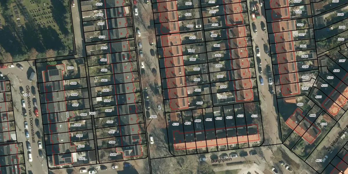 Gebruik de zoekbalk of klik op een perceel voor informatie over de adressen binnen dit perceel.