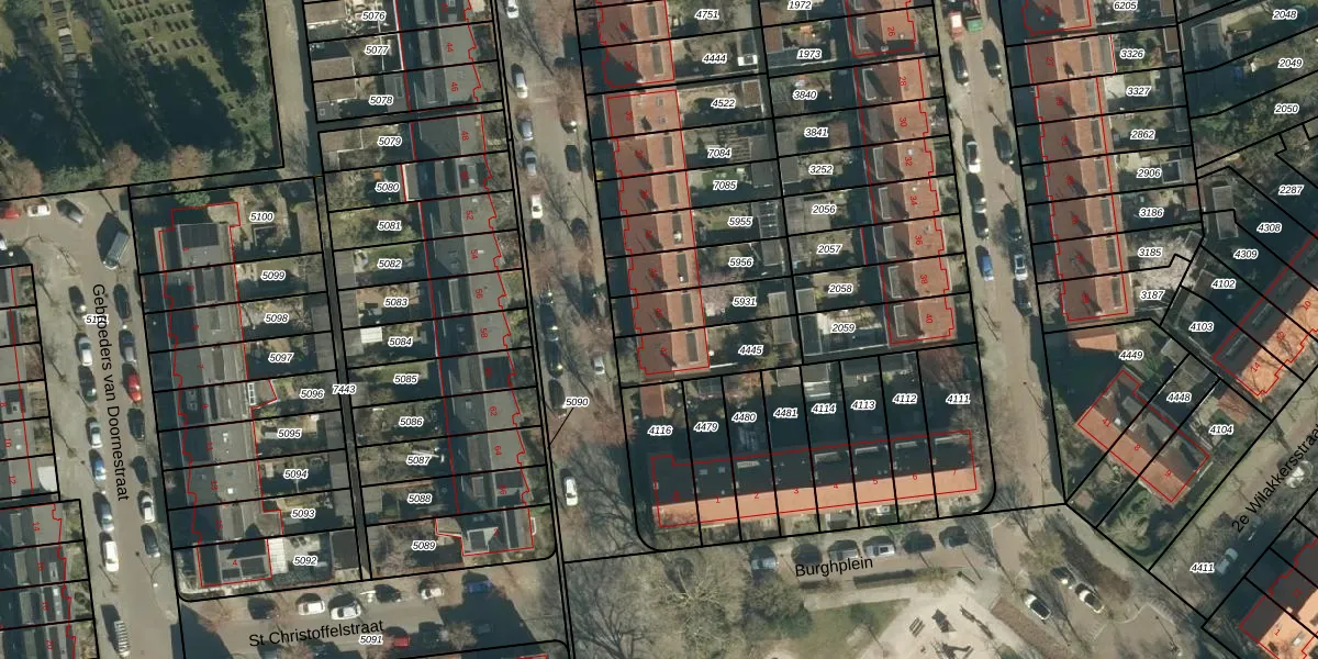 Burghstraat 45 is gelegen op kadastraal perceel STM00E5931. Deze kadastrale aanduiding is uniek en wordt gebruikt door het Kadaster om eigendomsrechten en andere zakelijke rechten vast te leggen. Het perceel maakt onderdeel uit van de kadastrale gemeente Stratum.