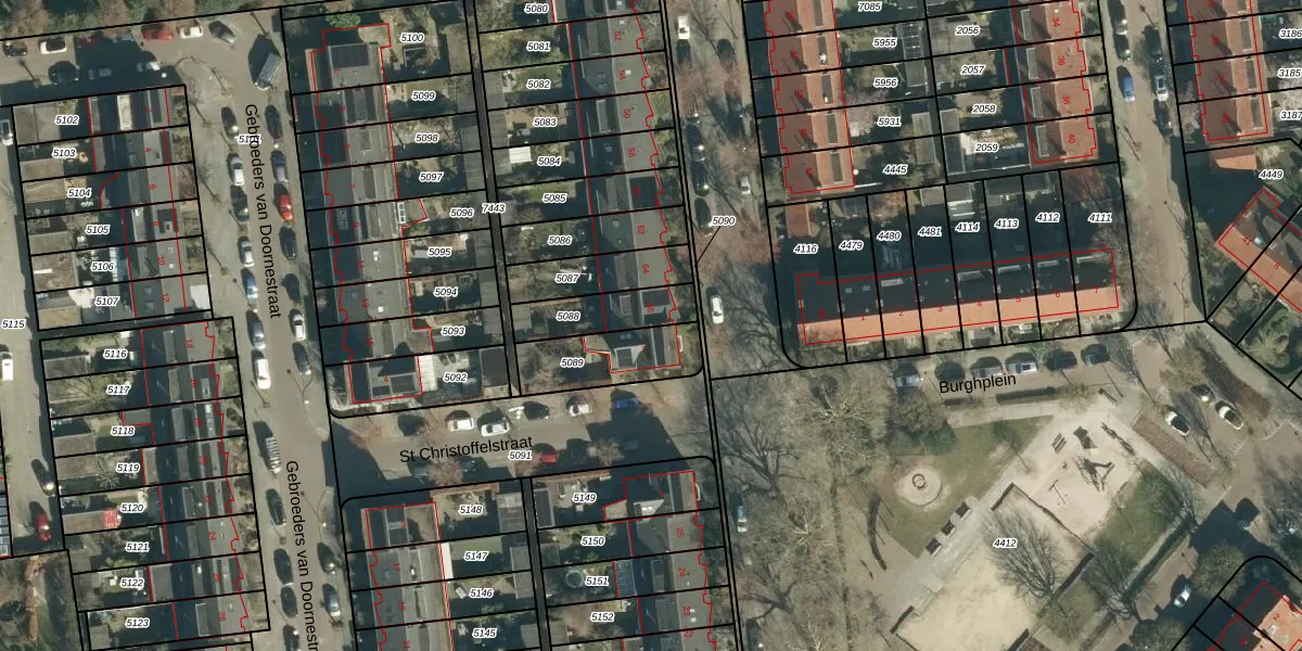 Gebruik de zoekbalk of klik op een perceel voor informatie over de adressen binnen dit perceel.