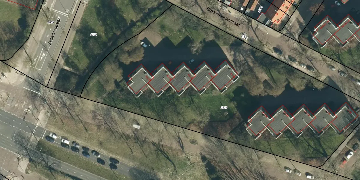 Het perceel waarop Busken Huetstraat 43 staat heeft een oppervlakte van 7362 m². Dit is een zeer groot perceel. De perceeloppervlakte wordt geregistreerd door het Kadaster. Gedetailleerde informatie over de maten van dit perceel kunt u vinden in het rapport Kadastrale kaart met maatvoering van Busken Huetstraat 43.