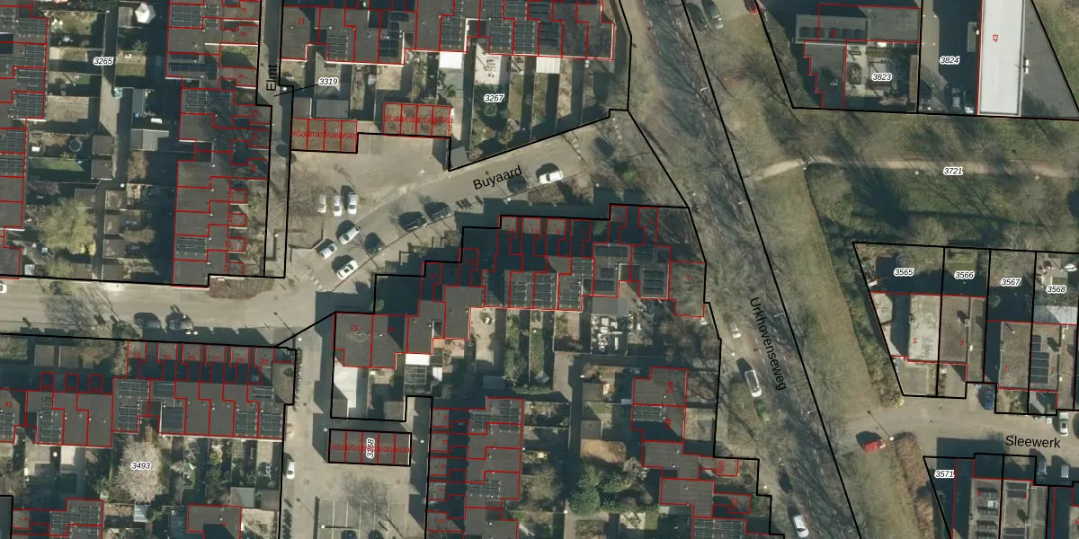 Het perceel waarop Buyaard 11 staat heeft een oppervlakte van 6371 m². Dit is een zeer groot perceel. De perceeloppervlakte wordt geregistreerd door het Kadaster. Gedetailleerde informatie over de maten van dit perceel kunt u vinden in het rapport Kadastrale kaart met maatvoering van Buyaard 11.