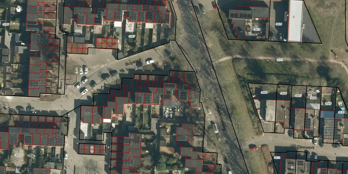 Het perceel waarop Buyaard 5 staat heeft een oppervlakte van 6371 m². Dit is een zeer groot perceel. De perceeloppervlakte wordt geregistreerd door het Kadaster. Gedetailleerde informatie over de maten van dit perceel kunt u vinden in het rapport Kadastrale kaart met maatvoering van Buyaard 5.