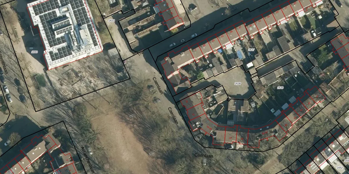 Caenlaan 9 is gelegen op kadastraal perceel WSL01S2637. Deze kadastrale aanduiding is uniek en wordt gebruikt door het Kadaster om eigendomsrechten en andere zakelijke rechten vast te leggen. Het perceel maakt onderdeel uit van de kadastrale gemeente Woensel.