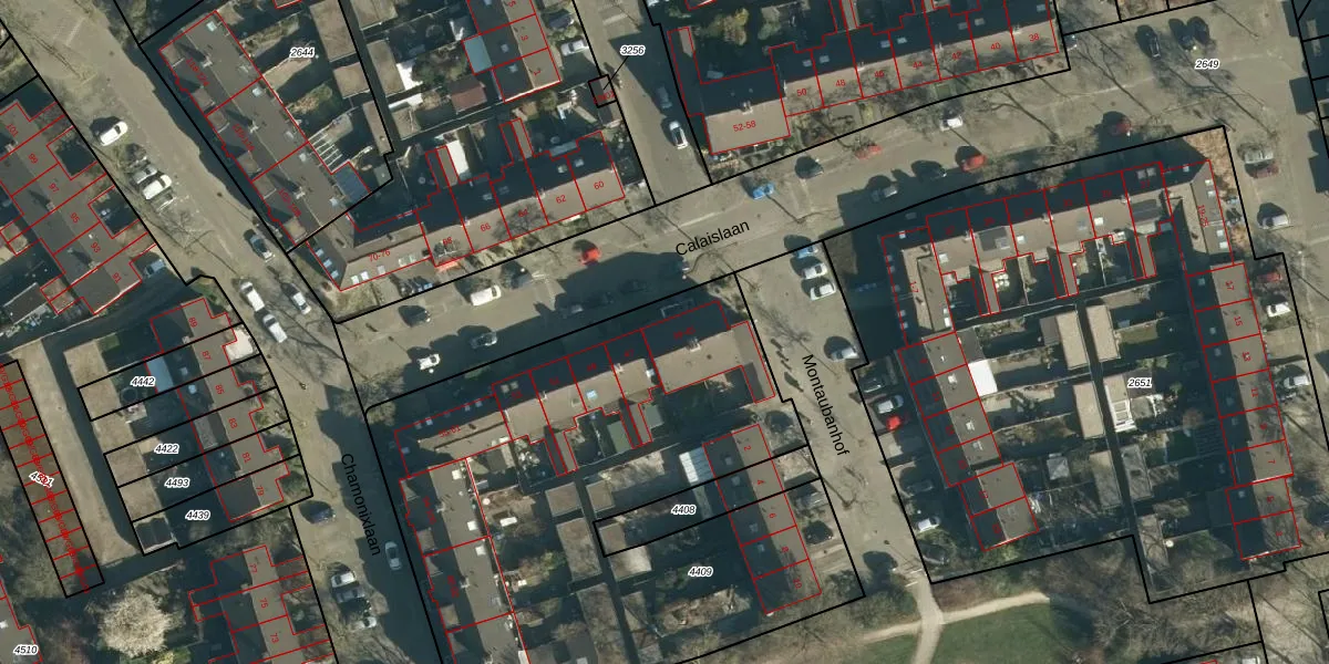 Het perceel waarop Calaislaan 45 staat heeft een oppervlakte van 3023 m². Dit is een zeer groot perceel. De perceeloppervlakte wordt geregistreerd door het Kadaster. Gedetailleerde informatie over de maten van dit perceel kunt u vinden in het rapport Kadastrale kaart met maatvoering van Calaislaan 45.