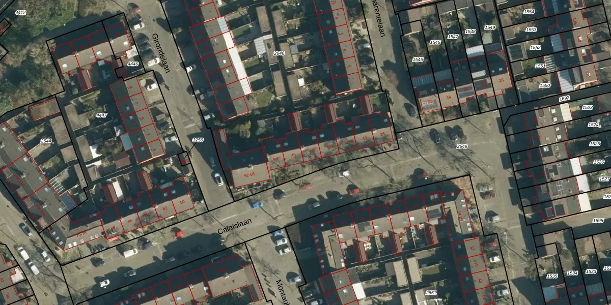 Het perceel waarop Calaislaan 46 staat heeft een oppervlakte van 4372 m². Dit is een zeer groot perceel. De perceeloppervlakte wordt geregistreerd door het Kadaster. Gedetailleerde informatie over de maten van dit perceel kunt u vinden in het rapport Kadastrale kaart met maatvoering van Calaislaan 46.
