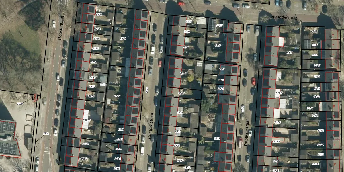 Het perceel waarop Cameliastraat 13 staat heeft een oppervlakte van 417 m². Dit is een groot perceel. De perceeloppervlakte wordt geregistreerd door het Kadaster. Gedetailleerde informatie over de maten van dit perceel kunt u vinden in het rapport Kadastrale kaart met maatvoering van Cameliastraat 13.