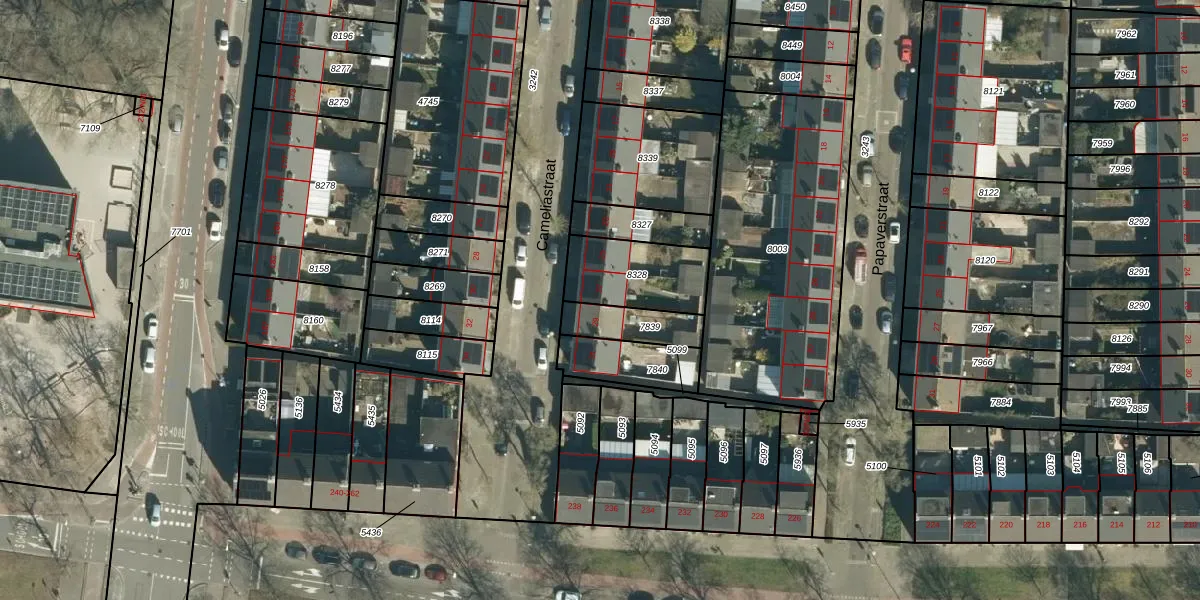 Het perceel waarop Cameliastraat 27 staat heeft een oppervlakte van 264 m². Dit is een middelgroot perceel. De perceeloppervlakte wordt geregistreerd door het Kadaster. Gedetailleerde informatie over de maten van dit perceel kunt u vinden in het rapport Kadastrale kaart met maatvoering van Cameliastraat 27.
