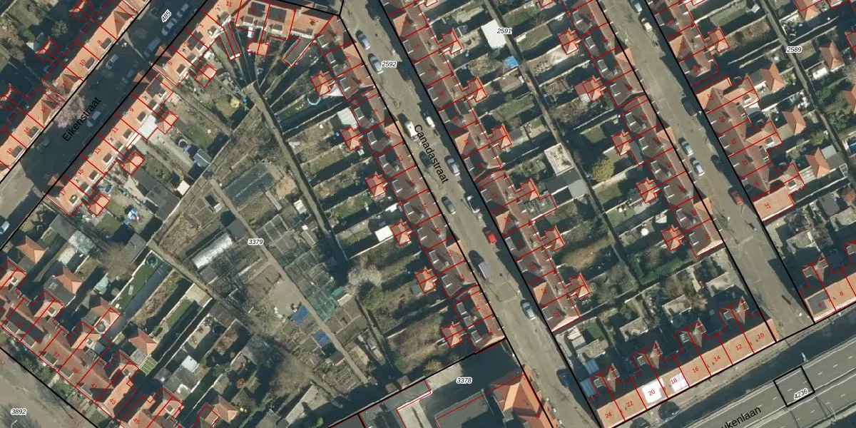 Canadastraat 16 is gelegen op kadastraal perceel STR03C3379. Deze kadastrale aanduiding is uniek en wordt gebruikt door het Kadaster om eigendomsrechten en andere zakelijke rechten vast te leggen. Het perceel maakt onderdeel uit van de kadastrale gemeente Strijp.