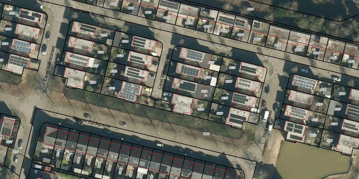 Gebruik de zoekbalk of klik op een perceel voor informatie over de adressen binnen dit perceel.