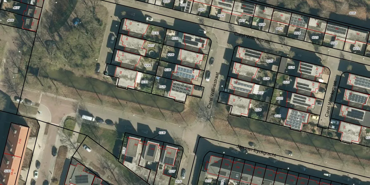 Carel Willinkstraat 45 is gelegen op kadastraal perceel STM00E6129. Deze kadastrale aanduiding is uniek en wordt gebruikt door het Kadaster om eigendomsrechten en andere zakelijke rechten vast te leggen. Het perceel maakt onderdeel uit van de kadastrale gemeente Stratum.