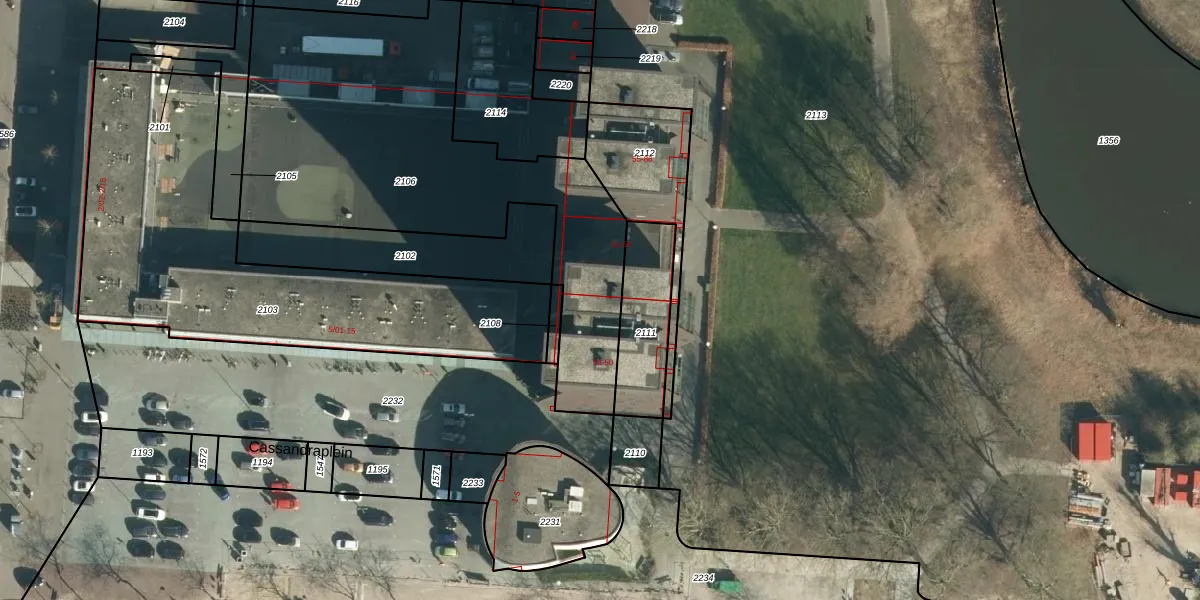 Het perceel waarop Cassandraplein 23 staat heeft een oppervlakte van 1896 m². Dit is een zeer groot perceel. De perceeloppervlakte wordt geregistreerd door het Kadaster. Gedetailleerde informatie over de maten van dit perceel kunt u vinden in het rapport Kadastrale kaart met maatvoering van Cassandraplein 23.