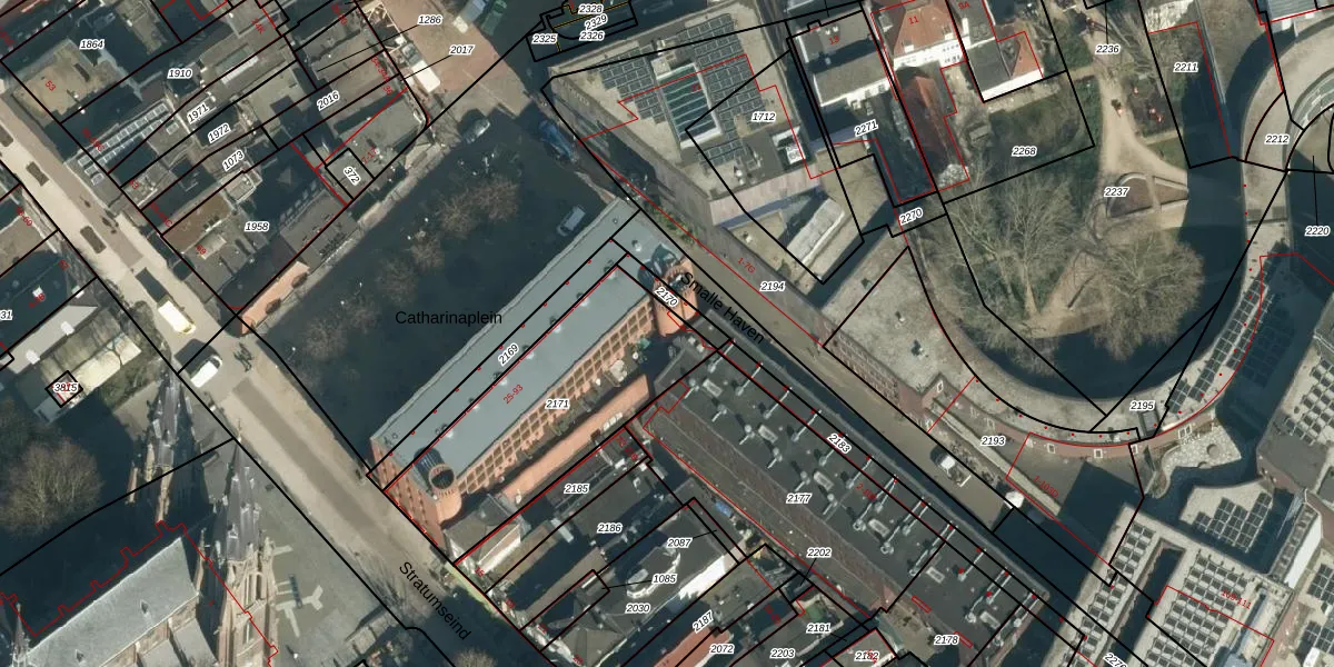 Het perceel waarop Catharinaplein 69 staat heeft een oppervlakte van 881 m². Dit is een groot perceel. De perceeloppervlakte wordt geregistreerd door het Kadaster. Gedetailleerde informatie over de maten van dit perceel kunt u vinden in het rapport Kadastrale kaart met maatvoering van Catharinaplein 69.
