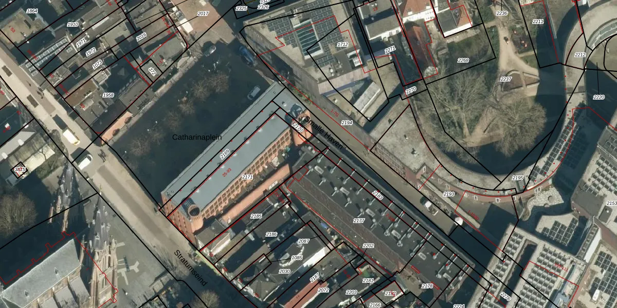 Catharinaplein 91 is gelegen op kadastraal perceel EHV00C2171. Deze kadastrale aanduiding is uniek en wordt gebruikt door het Kadaster om eigendomsrechten en andere zakelijke rechten vast te leggen. Het perceel maakt onderdeel uit van de kadastrale gemeente Eindhoven.