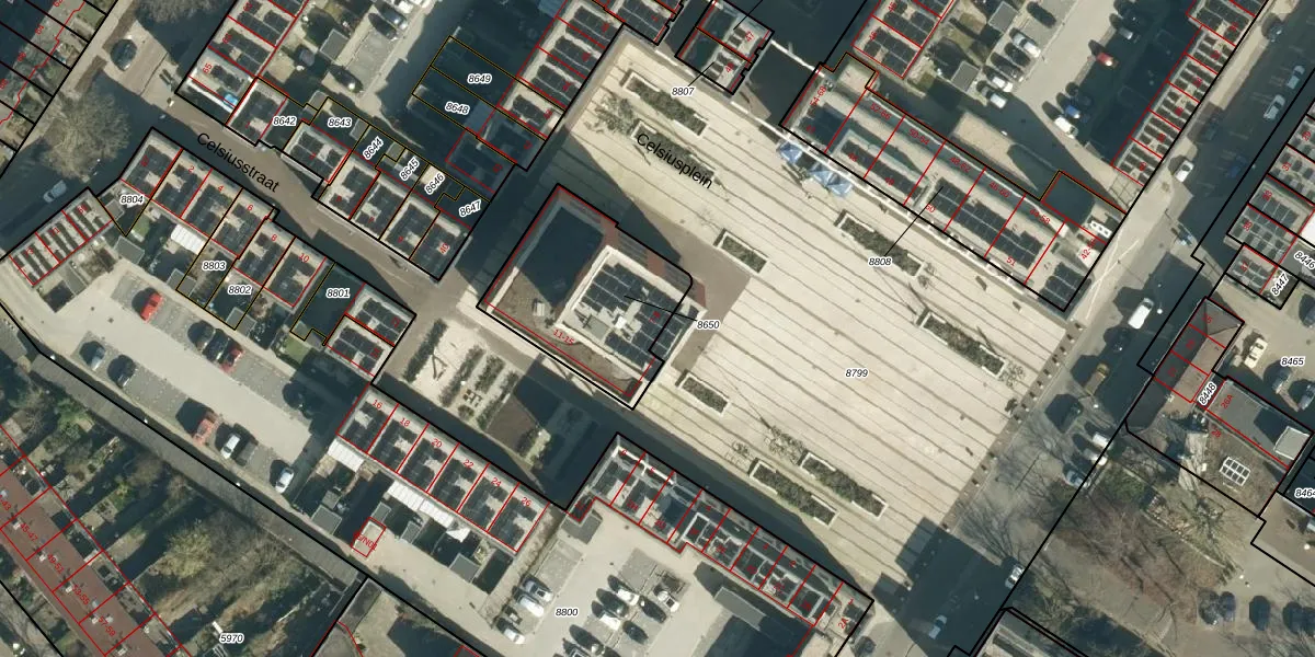Celsiusplein 7-D is gelegen op kadastraal perceel WSL01G8650. Deze kadastrale aanduiding is uniek en wordt gebruikt door het Kadaster om eigendomsrechten en andere zakelijke rechten vast te leggen. Het perceel maakt onderdeel uit van de kadastrale gemeente Woensel.