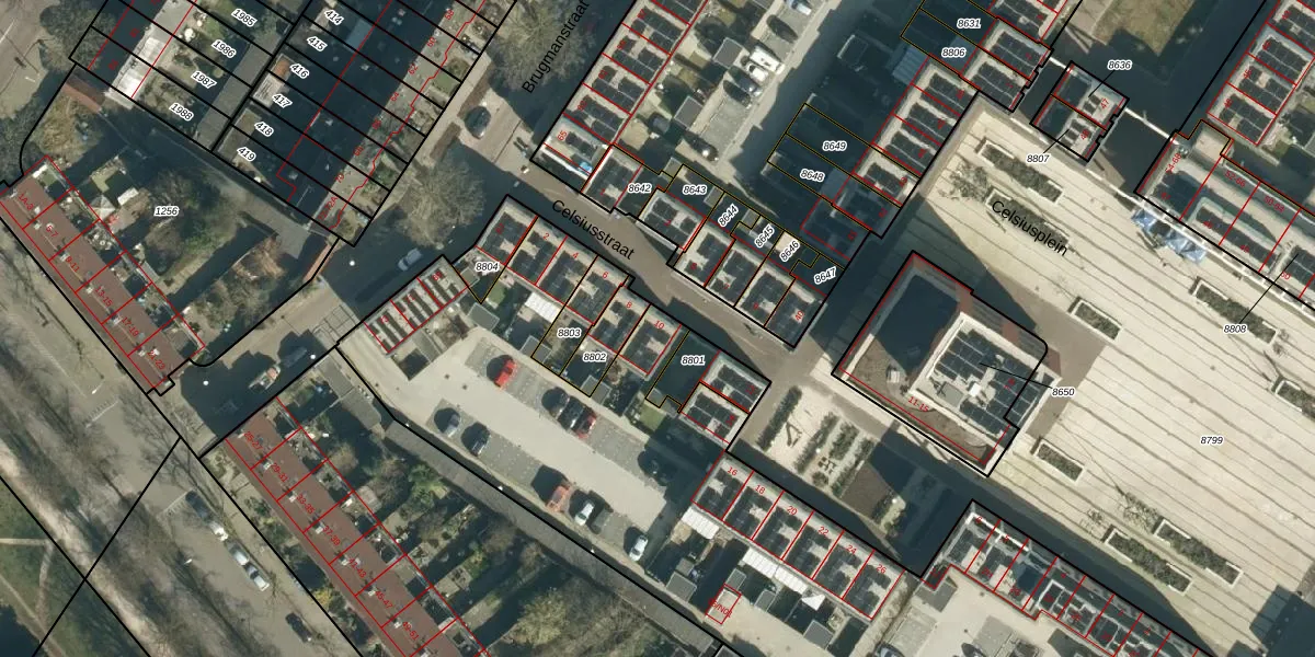 Celsiusstraat 10 is gelegen op kadastraal perceel WSL01G8800. Deze kadastrale aanduiding is uniek en wordt gebruikt door het Kadaster om eigendomsrechten en andere zakelijke rechten vast te leggen. Het perceel maakt onderdeel uit van de kadastrale gemeente Woensel.