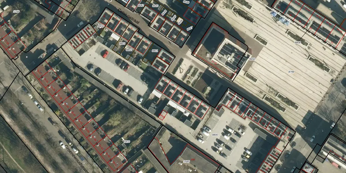 Celsiusstraat 18 is gelegen op kadastraal perceel WSL01G8800. Deze kadastrale aanduiding is uniek en wordt gebruikt door het Kadaster om eigendomsrechten en andere zakelijke rechten vast te leggen. Het perceel maakt onderdeel uit van de kadastrale gemeente Woensel.