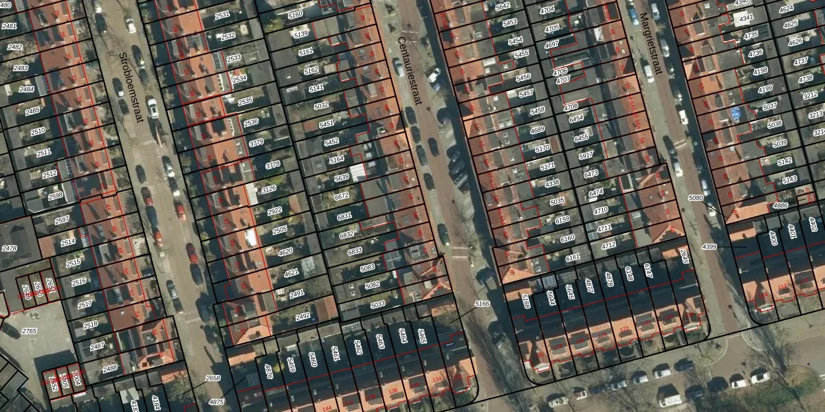 Gebruik de zoekbalk of klik op een perceel voor informatie over de adressen binnen dit perceel.