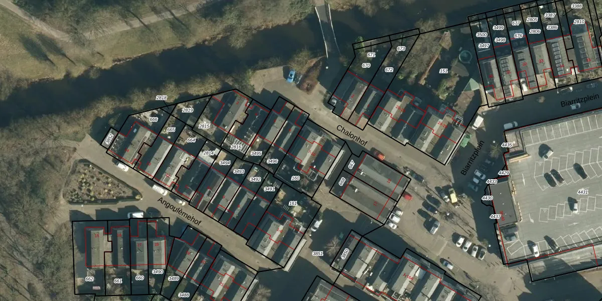Het perceel waarop Chalonhof 9 staat heeft een oppervlakte van 324 m². Dit is een groot perceel. De perceeloppervlakte wordt geregistreerd door het Kadaster. Gedetailleerde informatie over de maten van dit perceel kunt u vinden in het rapport Kadastrale kaart met maatvoering van Chalonhof 9.