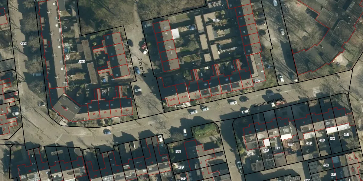 Chamonixlaan 16 is gelegen op kadastraal perceel WSL01S2653. Deze kadastrale aanduiding is uniek en wordt gebruikt door het Kadaster om eigendomsrechten en andere zakelijke rechten vast te leggen. Het perceel maakt onderdeel uit van de kadastrale gemeente Woensel.