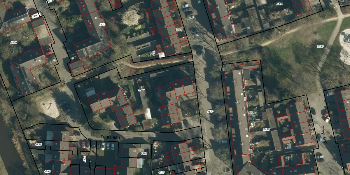 Het adres is gelegen op perceel 1887 in de sectie S en de kadastrale gemeente Woensel. De kadastrale aanduiding is aldus WSL01-S-1887. Het perceel is met 2234 m² relatief groot. Het gemiddelde ligt in de kadastrale gemeente Woensel op 1039,13 m². Het grootste perceel in de kadastrale gemeente is 74,9 ha. Het kleinste perceel heeft een oppervlakte van 0 m². Er zijn 14 adressen aanwezig op het perceel. De huidige grenzen van het perceel zijn digitaal in de Basisregistratie Kadaster (BRK) geregistreerd op 24-04-2006.