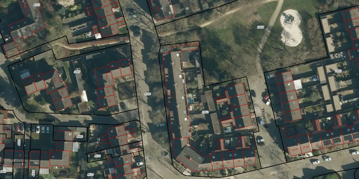 Het adres is gelegen op perceel 2652 in de sectie S en de kadastrale gemeente Woensel. De kadastrale aanduiding is aldus WSL01-S-2652. Het perceel is met 3025 m² relatief groot. Het gemiddelde ligt in de kadastrale gemeente Woensel op 1039,13 m². Het grootste perceel in de kadastrale gemeente is 74,9 ha. Het kleinste perceel heeft een oppervlakte van 0 m². Er zijn 32 adressen aanwezig op het perceel. De laatste wijziging in het de Basisregistratie Kadaster (BRK) was op 24-04-2006.