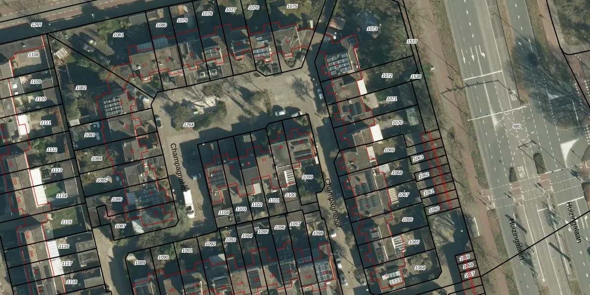 Het perceel waarop Champagnehof 29 staat heeft een oppervlakte van 266 m². Dit is een middelgroot perceel. De perceeloppervlakte wordt geregistreerd door het Kadaster. Gedetailleerde informatie over de maten van dit perceel kunt u vinden in het rapport Kadastrale kaart met maatvoering van Champagnehof 29.