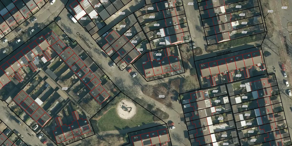 Charentelaan 24 is gelegen op kadastraal perceel WSL01S1643. Deze kadastrale aanduiding is uniek en wordt gebruikt door het Kadaster om eigendomsrechten en andere zakelijke rechten vast te leggen. Het perceel maakt onderdeel uit van de kadastrale gemeente Woensel.