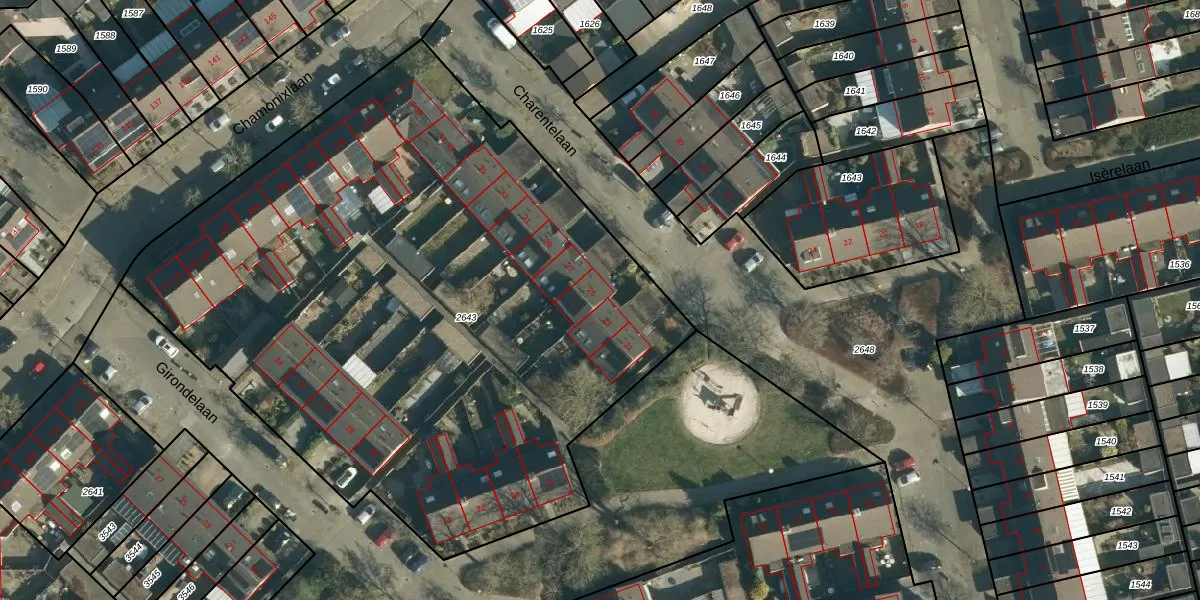 Charentelaan 25 is gelegen op kadastraal perceel WSL01S2643. Deze kadastrale aanduiding is uniek en wordt gebruikt door het Kadaster om eigendomsrechten en andere zakelijke rechten vast te leggen. Het perceel maakt onderdeel uit van de kadastrale gemeente Woensel.