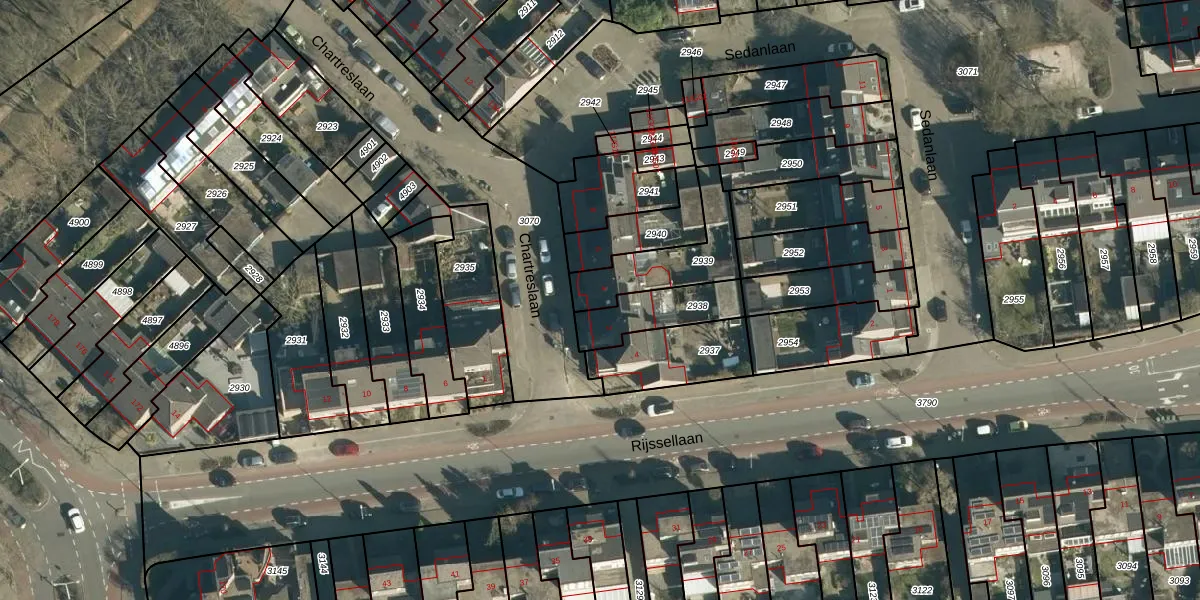 Gebruik de zoekbalk of klik op een perceel voor informatie over de adressen binnen dit perceel.