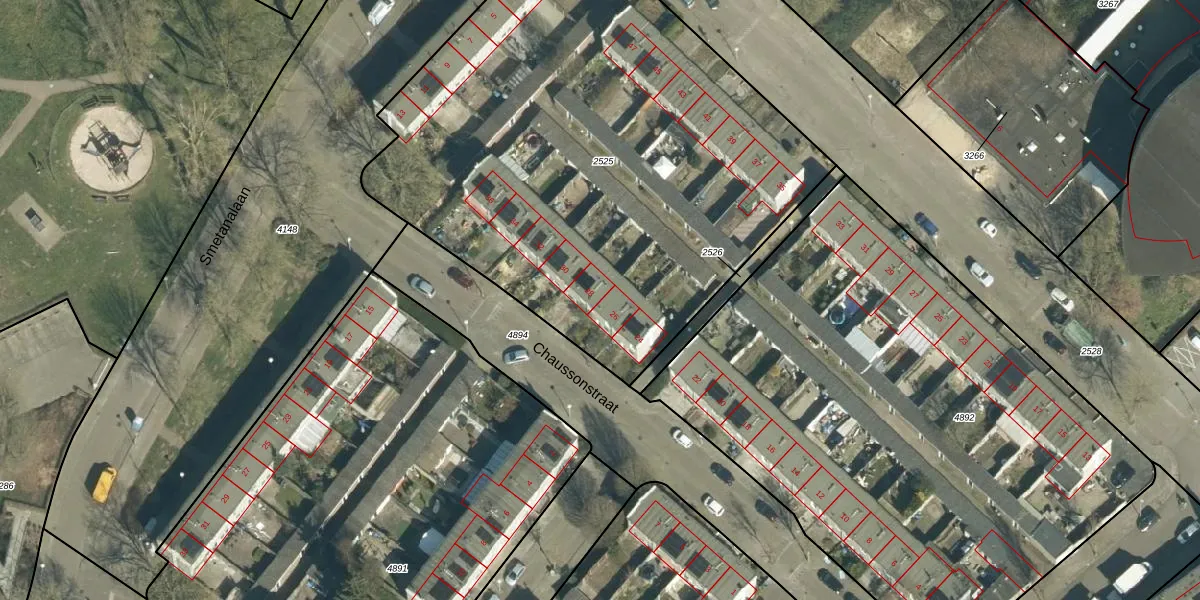 Het perceel waarop Chaussonstraat 28 staat heeft een oppervlakte van 3225 m². Dit is een zeer groot perceel. De perceeloppervlakte wordt geregistreerd door het Kadaster. Gedetailleerde informatie over de maten van dit perceel kunt u vinden in het rapport Kadastrale kaart met maatvoering van Chaussonstraat 28.