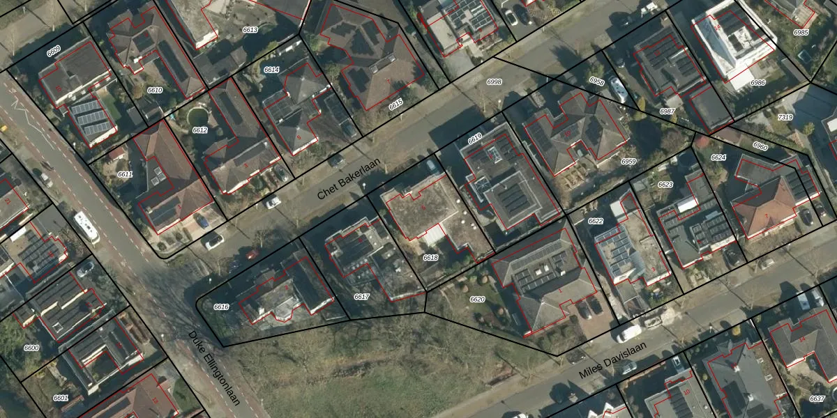 Het perceel waarop Chet Bakerlaan 6 staat heeft een oppervlakte van 530 m². Dit is een groot perceel. De perceeloppervlakte wordt geregistreerd door het Kadaster. Gedetailleerde informatie over de maten van dit perceel kunt u vinden in het rapport Kadastrale kaart met maatvoering van Chet Bakerlaan 6.