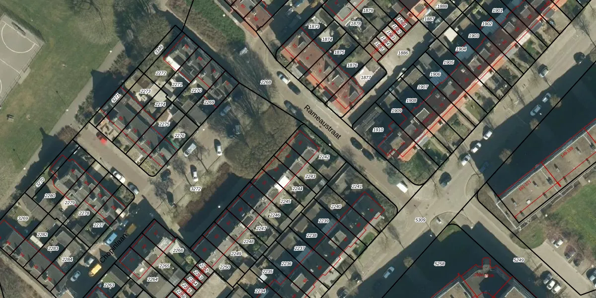 Gebruik de zoekbalk of klik op een perceel voor informatie over de adressen binnen dit perceel.