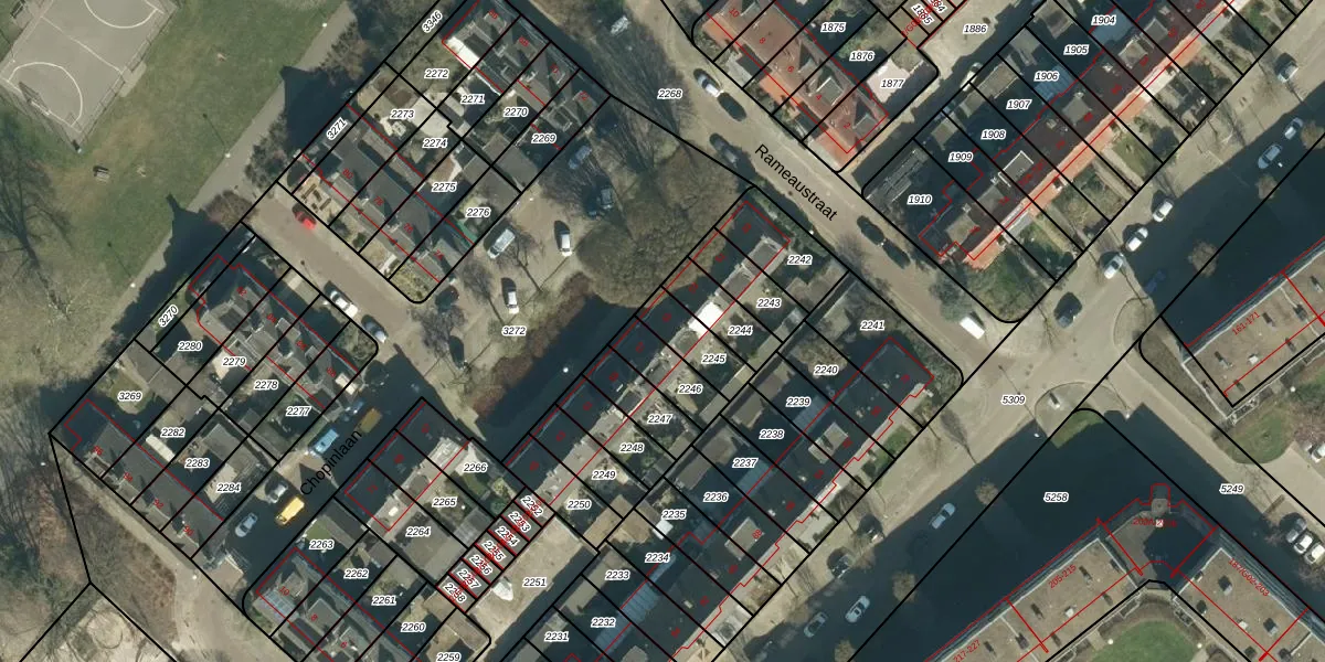 Gebruik de zoekbalk of klik op een perceel voor informatie over de adressen binnen dit perceel.