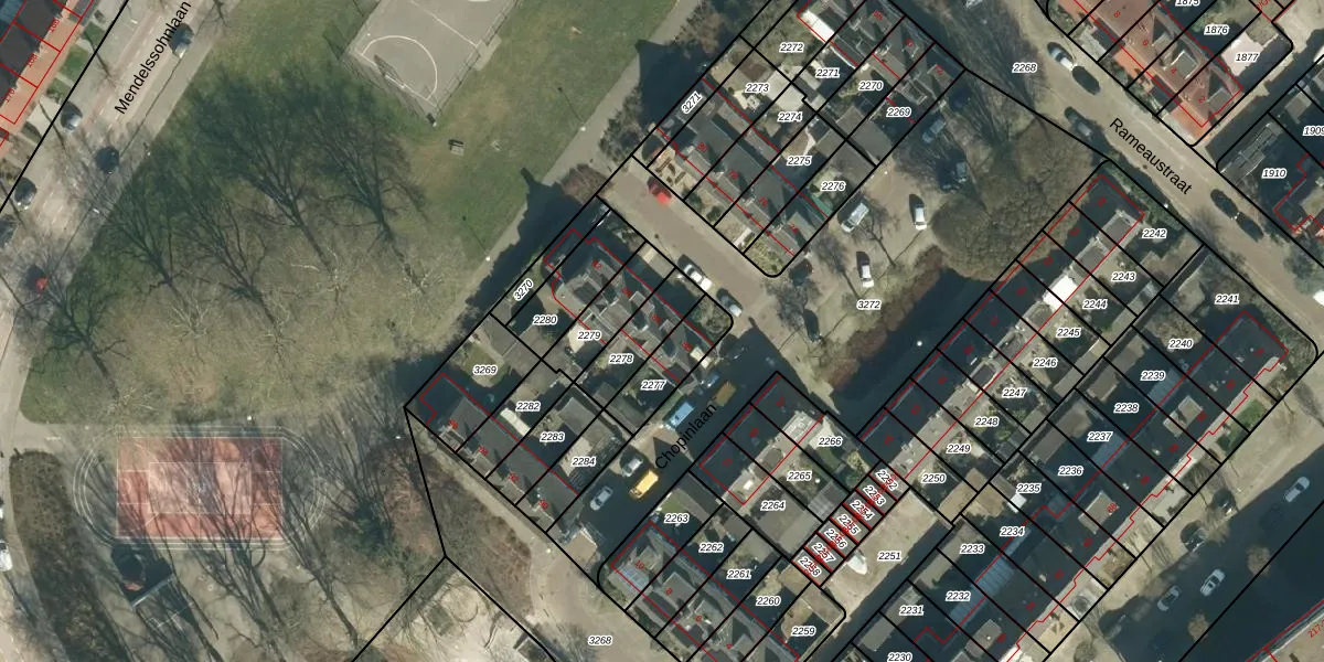 Gebruik de zoekbalk of klik op een perceel voor informatie over de adressen binnen dit perceel.