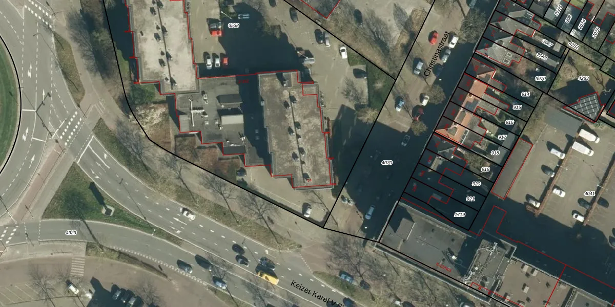 Het perceel waarop Christinastraat 102 staat heeft een oppervlakte van 5425 m². Dit is een zeer groot perceel. De perceeloppervlakte wordt geregistreerd door het Kadaster. Gedetailleerde informatie over de maten van dit perceel kunt u vinden in het rapport Kadastrale kaart met maatvoering van Christinastraat 102.
