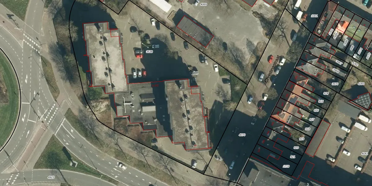Het perceel waarop Christinastraat 106 staat heeft een oppervlakte van 5425 m². Dit is een zeer groot perceel. De perceeloppervlakte wordt geregistreerd door het Kadaster. Gedetailleerde informatie over de maten van dit perceel kunt u vinden in het rapport Kadastrale kaart met maatvoering van Christinastraat 106.