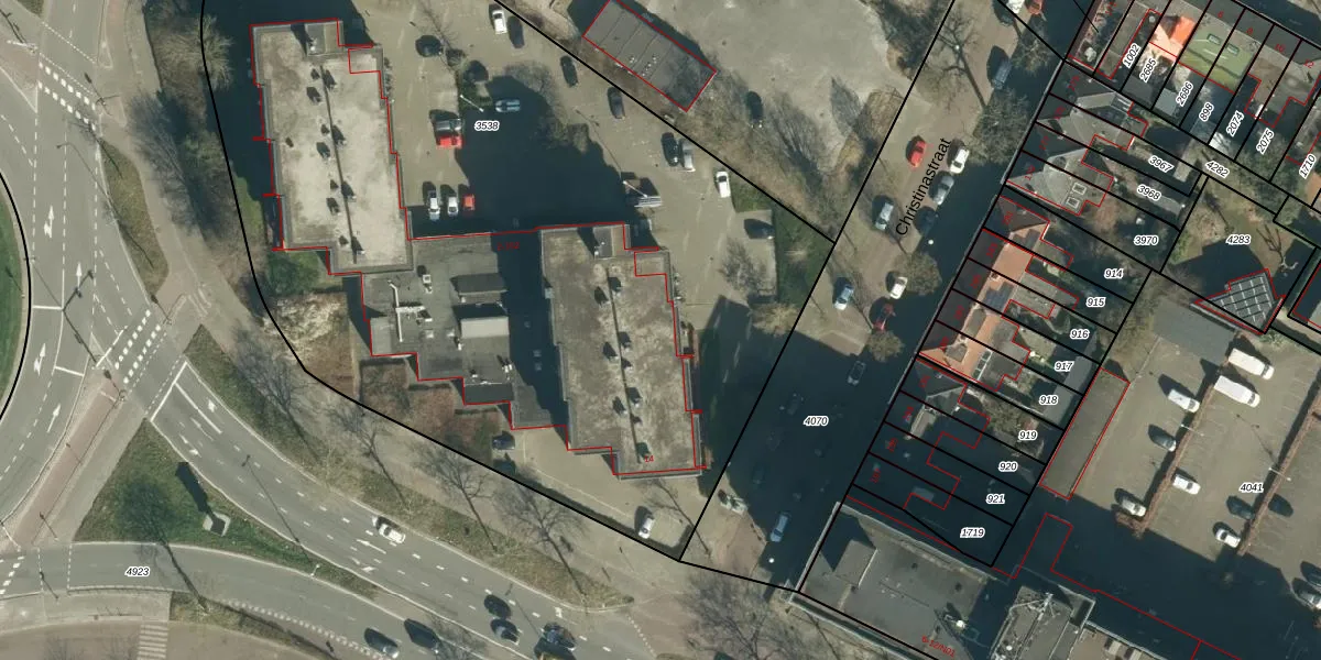 Het perceel waarop Christinastraat 84 staat heeft een oppervlakte van 5425 m². Dit is een zeer groot perceel. De perceeloppervlakte wordt geregistreerd door het Kadaster. Gedetailleerde informatie over de maten van dit perceel kunt u vinden in het rapport Kadastrale kaart met maatvoering van Christinastraat 84.