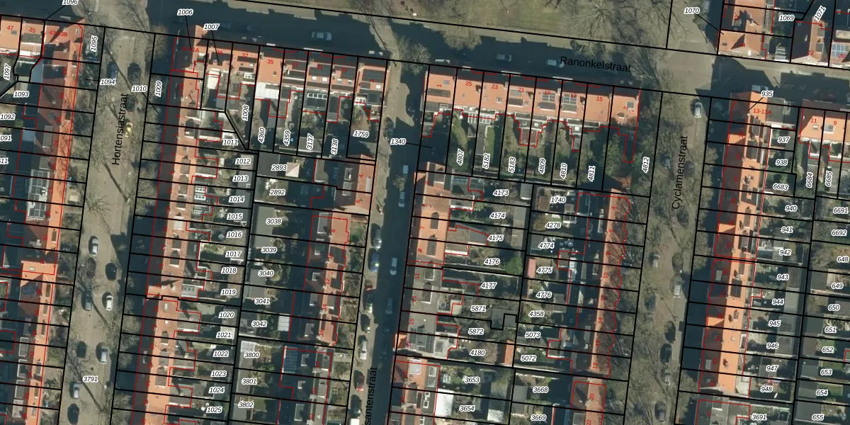 Gebruik de zoekbalk of klik op een perceel voor informatie over de adressen binnen dit perceel.