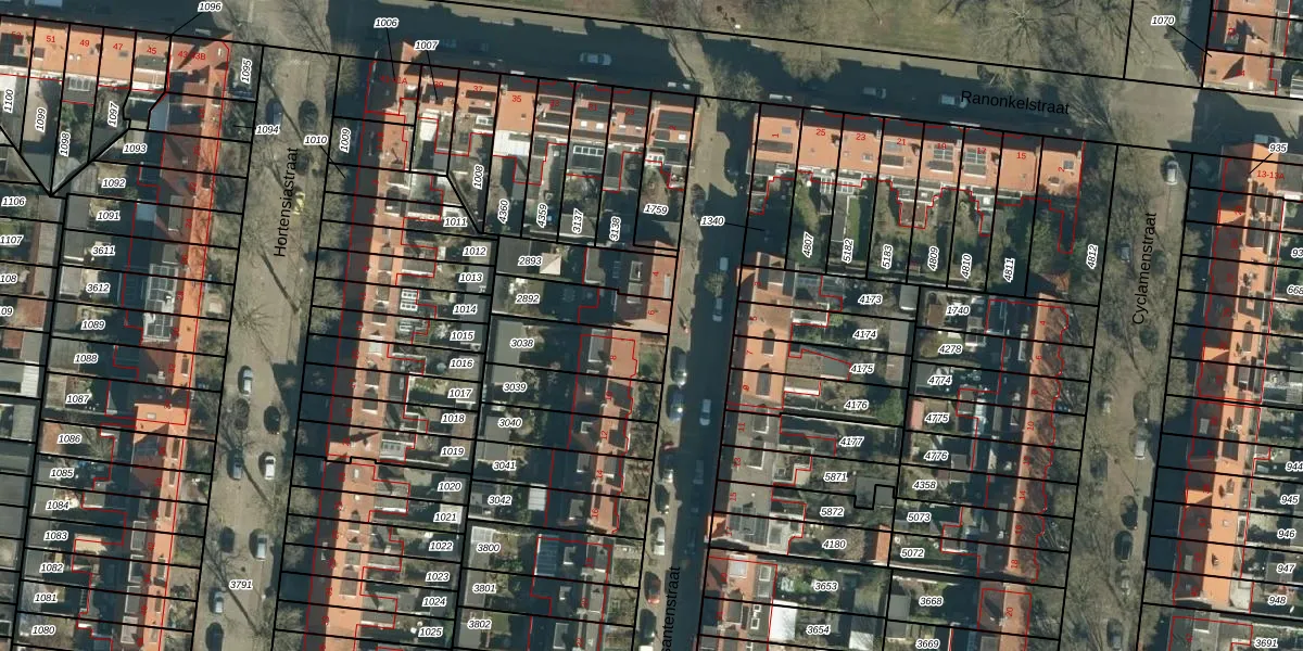 Gebruik de zoekbalk of klik op een perceel voor informatie over de adressen binnen dit perceel.