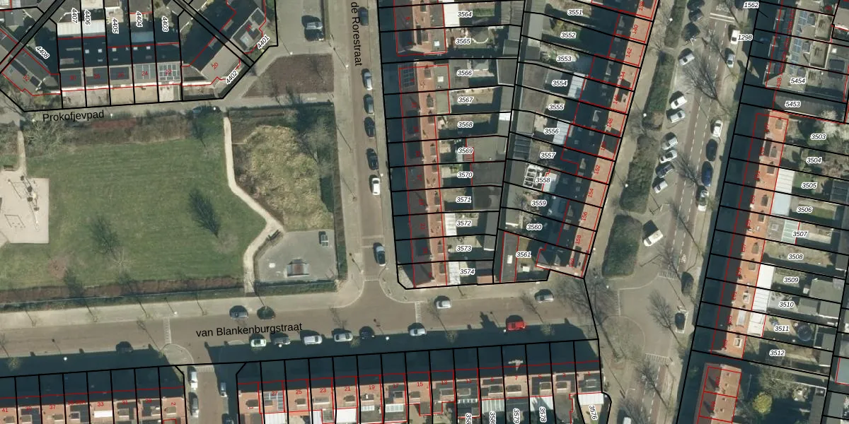 Gebruik de zoekbalk of klik op een perceel voor informatie over de adressen binnen dit perceel.